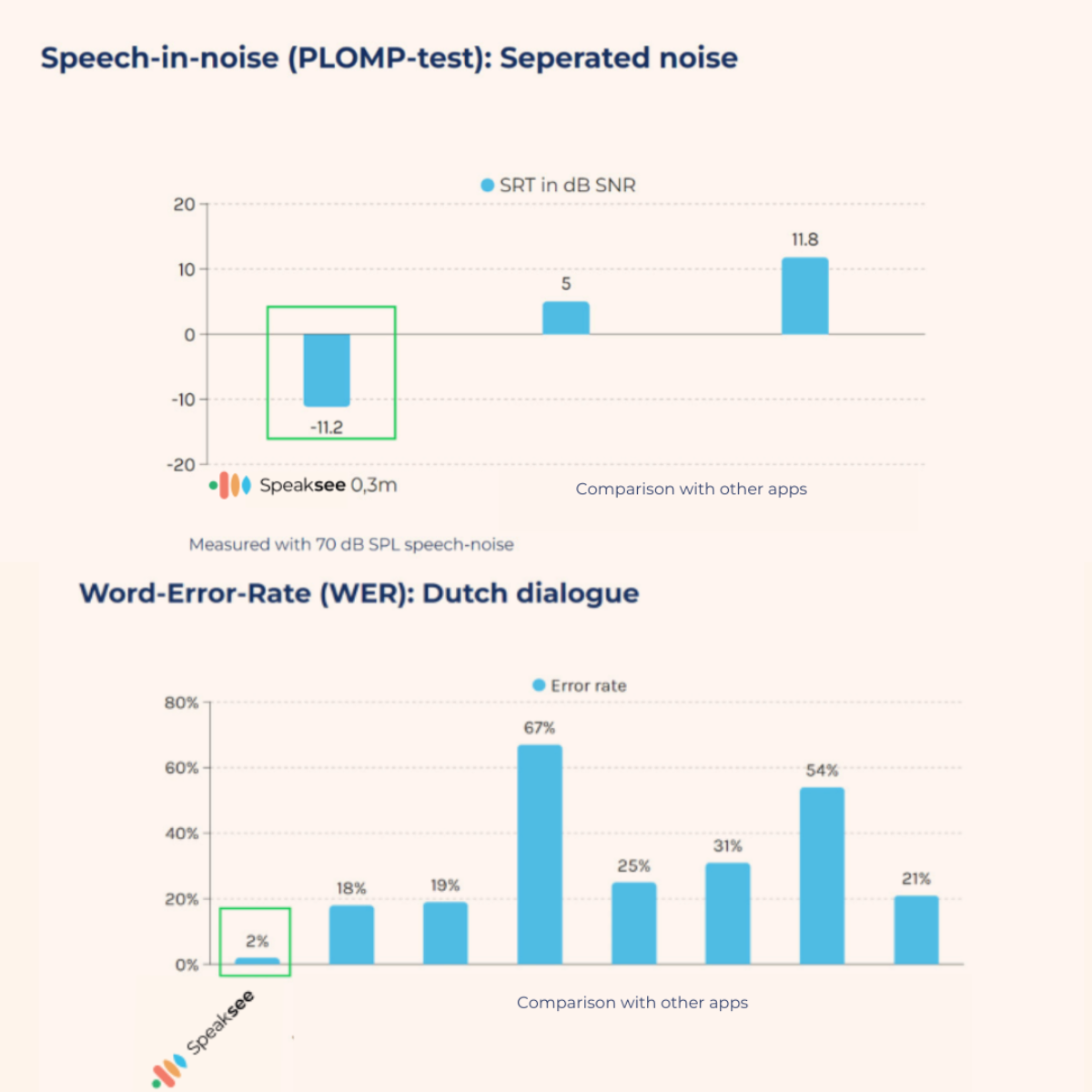 Speaksee biedt de hoogste nauwkeurigheid en presteert optimaal in ruis