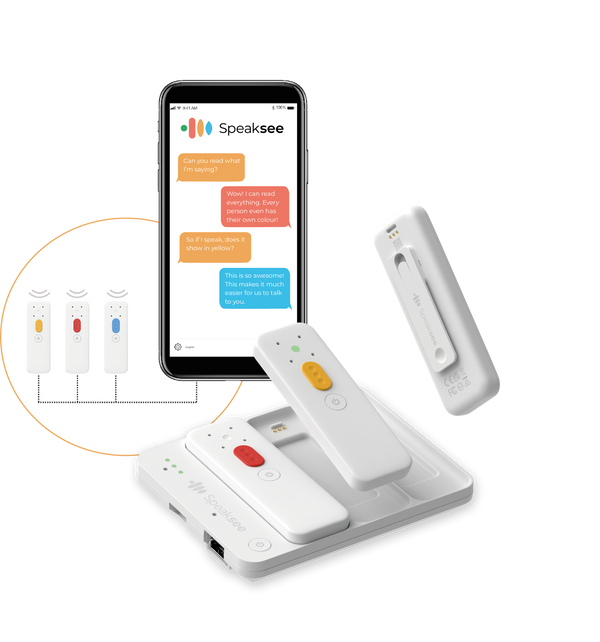 Speaksee is een baanbrekende oplossing die gesproken woorden omzet naar geschreven tekst, waardoor mensen met gehoorverlies direct kunnen deelnemen aan gesprekken.